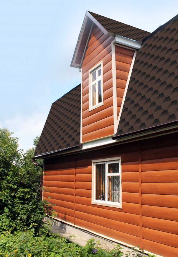 • В отличие от облицовки фасада деревом, сайдинг под бревно металлический «Блок-хаус GL» прост в монтаже и не требует дополнительного послемонтажного ухода.